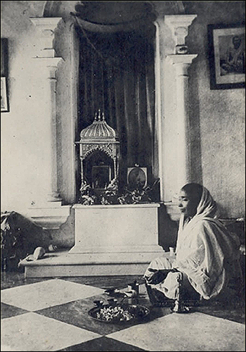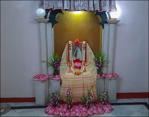 তিনি কলকাতায় চলে এসে বলরাম বসুর বাড়িতে উঠলেন। কিন্তু মহাঅষ্টমীর সন্ধিপূজার আগে মায়ের জ্বর এসে গেল। এদিকে মায়ের জ্বর শুনে গিরিশ ঘোষ মহা চিন্তায় পড়ে গেলেন। আর বলতে লাগলেন: "আমি তো মাটির প্রতিমা উপলক্ষে শ্রীমায়ের পূজা করছি। সন্ধিপূজা তো গভীর রাতে অনুষ্ঠিত হবে।" ওদিকে মা ধড়ফড় করে উঠে পাশের গলিতে গিয়ে গিরিশ ঘোষের বাড়িতে গিয়ে উপস্থিত হলেন। শ্রীমাকে দেখে গিরিশের আনন্দের সীমা রইল না। বলে উঠলেন "জয় মা, জয় মা"।